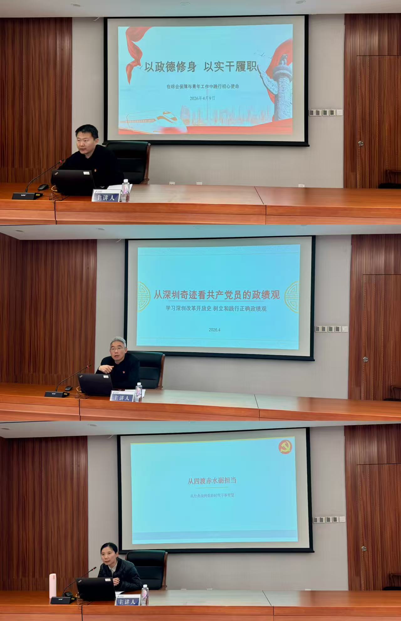郭宏阳结合济宁政德教育,解读为政以德、民为邦本等传统文化智慧,阐释新时代干部明大德、守公德、严私德的要求,分享以政德修身、以实干做好综合保障与青年工作的思路。罗军从深圳改革开放实践出发,围绕“为谁创造政绩、创造什么样的政绩、靠什么创造政绩”,阐明以人民为中心、实事求是、制度创新、久久为功的正确政绩观,激励大家求真务实、担当作为。蔡玉以四渡赤水为引,提炼实事求是、人民至上、灵活担当的政绩观内涵,结合人力资源工作,分享精准识人、精心育人、用心留人的实践方法。