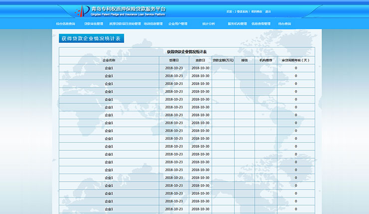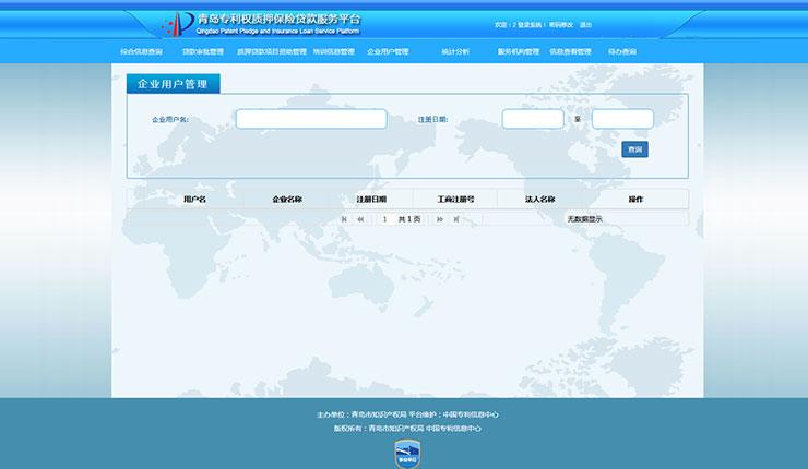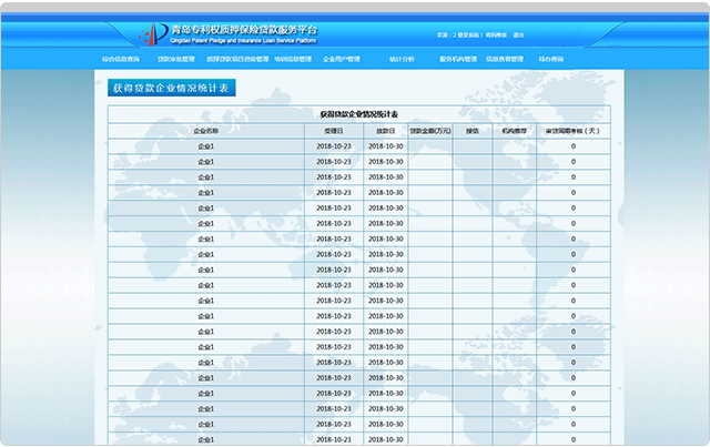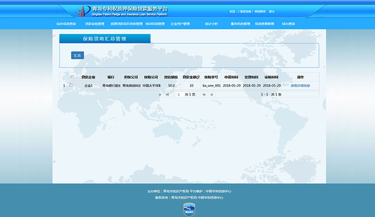 集成专利权质押融资资助管理功能,可对银行、担保、保险企业以及信息服务机构进行政策补贴。